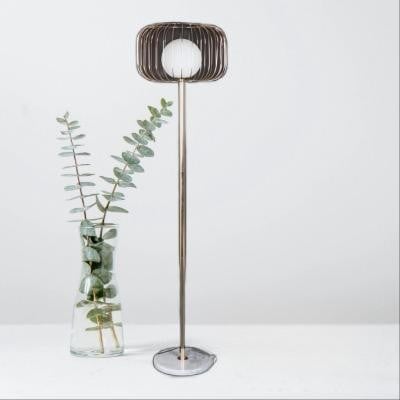 العصرية والحداثة تجدونها في تصميم مصباح الانارة الأرضي هذا المميز بحامل معدني ينتهي بلمبة دائرية محاطة بقفص معدني يضفي لمسة من التميز للتصميم، هذا المصباح سوف يشكل إضافة مميزة لديكور المنزل أو مكتب العمل ليجذب الأنظار لفخامة اختيارك.