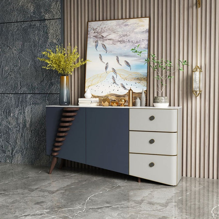 هذا هو بوفيه بتصميم مميز وعصري، حيث يتميز بمساحة تخزين كبيرة وتصميم جذاب وفريد من نوعه.تم تصنيع البوفيه من الخشب عالي الجودة والمتين، مما يجعله يتحمل الاستخدام اليومي لفترات طويلة دون التأثير على جودته. ويتميز البوفيه بالمساحة الكبيرة للتخزين والأدراج المتعددة لتنظيم الأشياء وحفظها بشكل منظم ومرتب.يتميز البوفيه بالتصميم الجذاب والمميز، حيث يضيف لمسة من الأناقة والشياكة لأي غرفة منزلية. كما يتميز بالمرونة في الاستخدام، حيث يمكن استخدامه في غرفة الطعام أو المنطقة العامة لأغراض التخزين والاستخدام المتعدد.