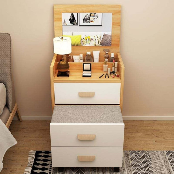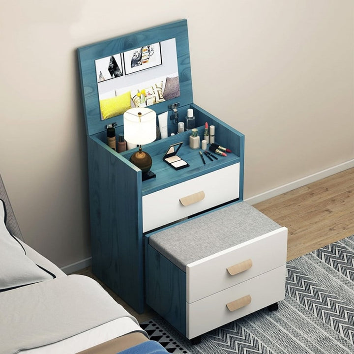 تسريحة الأثاث الحديثة مصنوع من الخشب الصلب و خزينه تحتوي علي عدد 2 ادراج و متاحه باللون الخشبي والابيض والازرق و مقاس ارتفاع 74 سم و عرض 40 سم و طول 50 سم و يمكن استخدامها في المنازل و الفنادق