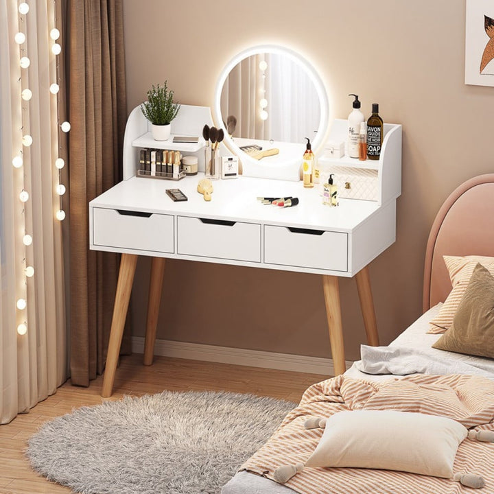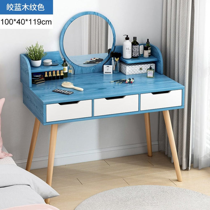 إجعلي أحلامك حقيقة مع هذه التسريحة الرائعة , بإستخدام المرآة ذات العرض الكامل يمكنك أستخدام المكياج وتصفيف شعرك بكل ليونة , تتميز بتصميم بسيط و جذاب يضيف جمالاً الي غرفه نومك .- تسريحة ومرآة , و متوفره ب الوان ( ابيض - خشبي - ازرق ) و مقاس ( ارتفاع119 سم و عرض100 سم و عمق40سم )
