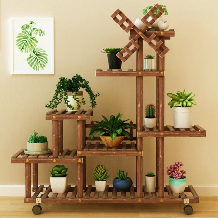 حامل زهور خشبي بتصميم الطاحونه المميز ف هو مصنوع من الخشب الصلب المقاوم للتأكل و التعفن من الماء متوفر ب اللون الخشب الطبيعي و مقاس ( ارتفاع 75 سم * العرض 85 سم * العمق 25 سم )