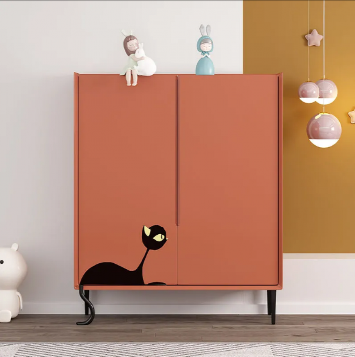 حافظ على حذائك منظمًا بشكل أنيق مع خزانة الأحذية الايطالية هذه. توفر الأرفف العديدة مساحة كبيرة لجميع احتياجات الأحذية الخاصة بك. الخزانه مصنوعة من خشب ام دي اف وتتميز بأرجل معدنية ورسمة قطة لإضفاء لمسة عصرية على الخزانة. مع لون برتقالي مميز و مقاس واحد و هو ( ارتفاع 120* عرض 88* عمق 40سم )
