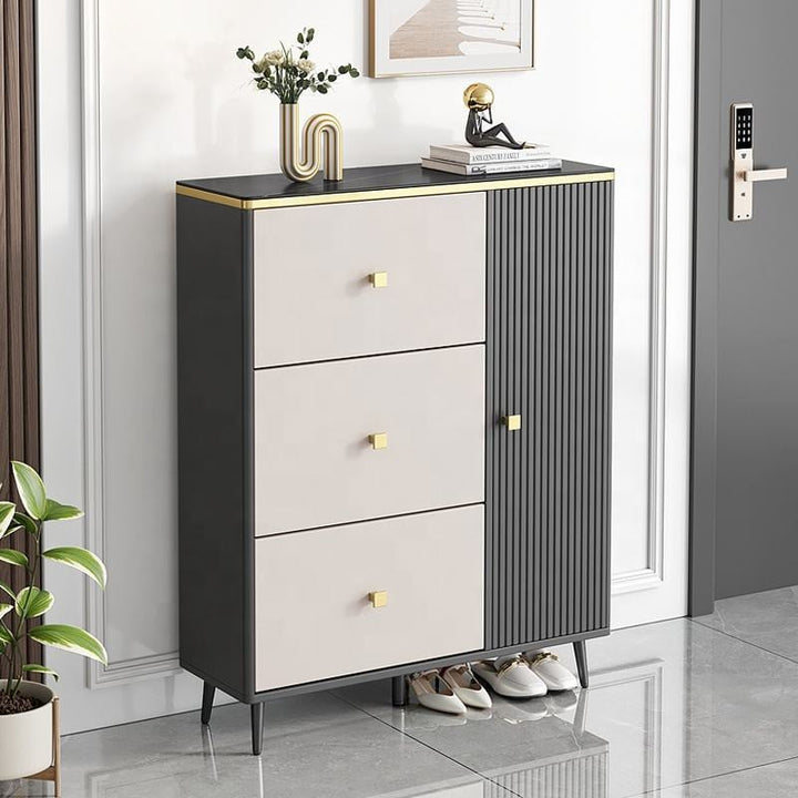 خزانة احذية مودرن بتصميم أنيق وعملي، مثالية لتنظيم أحذيتك بشكل مرتب ومنظم. تأتي الخزانة بمقاس مثالي لمختلف المساحات وهو عمق30سم وعرض 90سم وارتفاع113سم، وتصنع من الخشب عالي الجودة مع لمسات من الستانلس ستيل الأنيق. يمكن استخدامها في المدخل أو غرفة النوم أو أي مكان تريده، حيث تضفي جمالية على الديكور العام للمكان. احصل على خزانة احذية مودرن عالية الجودة لذكريات مستدامة.