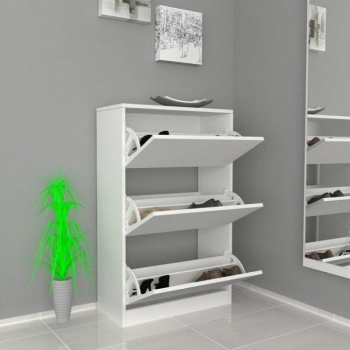 خزانة ومنظم الأحذية الفاخر يتميز ب ثلاث ادراج للدولاب.للتنظيم وحفظ الأحذية من الغبار تصميم أنيقة تناسب جميع الأذواق مصنوعة من الخشب المضغوط وجودة عالية بمواصفات خاصة -