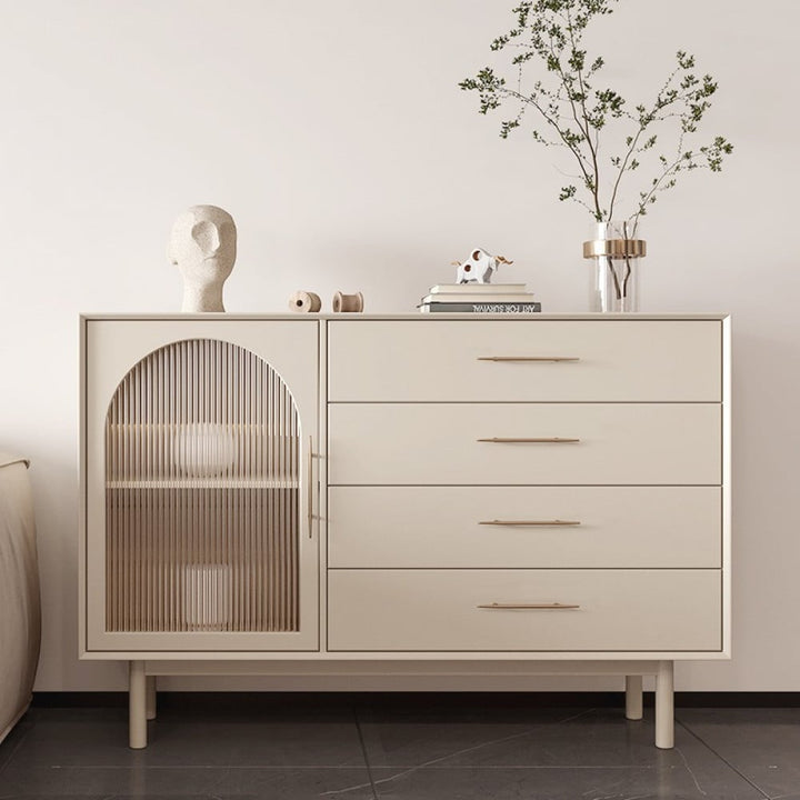 هذا البوفيه الفاخر هو مزيج مثالي من التصميم الحديث والتقليدي. مصنوع من الخشب الصلب والزجاج، ويتميز بلمسة نهائية ب اللون الكريمي أنيقة تضيف لمسة من الرقي إلى أي غرفة. بفضل الأدراج والرفوف ، يمكنك بسهولة تخزين جميع أواني الطعام وإكسسوارات المطبخ. كما أنه يتميز بسطح خشبي ناعم متطور لعرض أواني الطعام المفضلة لديك أو عناصر ديكور المنزل. من المؤكد أن هذه الخزانة الجانبية الفاخرة هي النقطة المحورية في أي غرفة في منزلك.