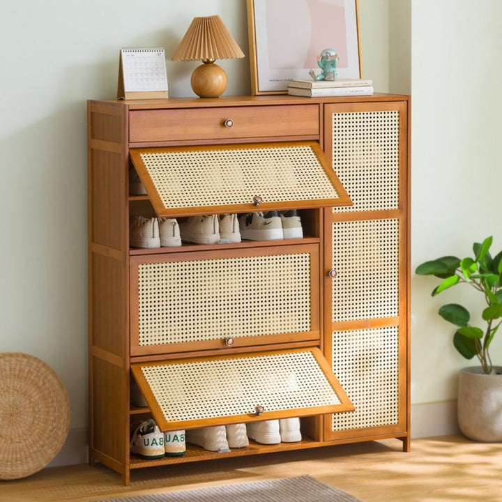 نظّم أحذيتك مع هذه الخزانة الأنيقة وحافظ عليها خالية من الغبار. خزانة الأحذية هذه مصنوعة من الخشب وأجود المواد، مما يمنحها مظهرًا عصريًا يناسب أي غرفة بشكل مثالي. مع وجود مقصورات متعددة لكل نوع من أنواع الأحذية، يمكن الآن تنظيم أحذيتك بطريقة جميلة وفعالة. احصل على حلول التخزين المثالية لأحذيتك واجعل غرفتك تبدو أنيقة وعصرية مع خزانة الأحذية هذه. ومتوفر باللون الخشبي بنمط اوروبي و هو متاح بمقاس الارتفاع 117 سم * العرض 100 سم * العمق 32 سم و تستخدم في المنزل