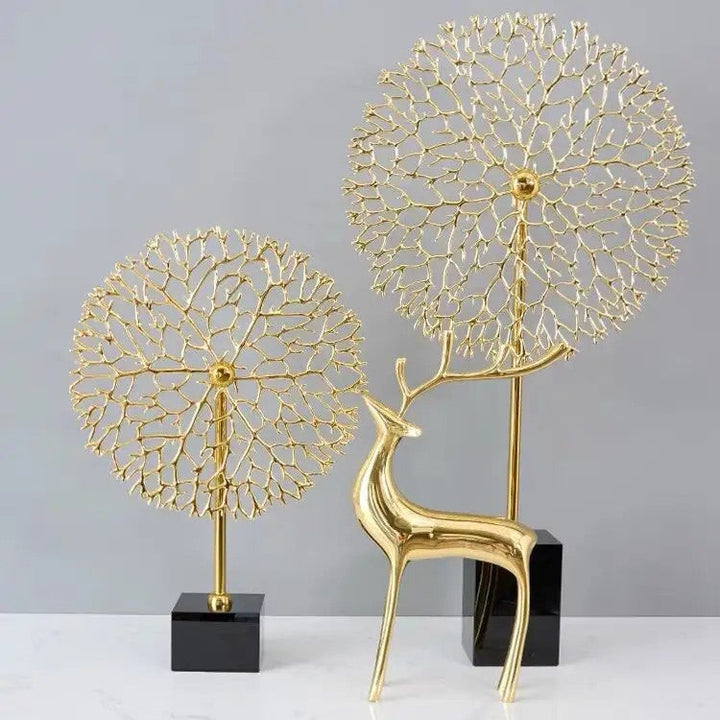 زين منزلك بإقتناءك لبعض القطع الفنيه الساحره بالحصول علي هذا الديكور الفني بتصميم فروع الشجر الذي يمكنك وضعها علي طاولات القهوه و تزيينها بهم او علي أسطح الخزانات . مصنوع من المعدن المطلي باللون الذهبي المميز و قاعده من الكريستال لأستخدام طويل الأمد . و تتميز بتفاصيل معقده حتي تجعلها لافته للأنظار . من المؤكد أنه سيضيف إحساسًا أنيقًا إلى أي غرفة