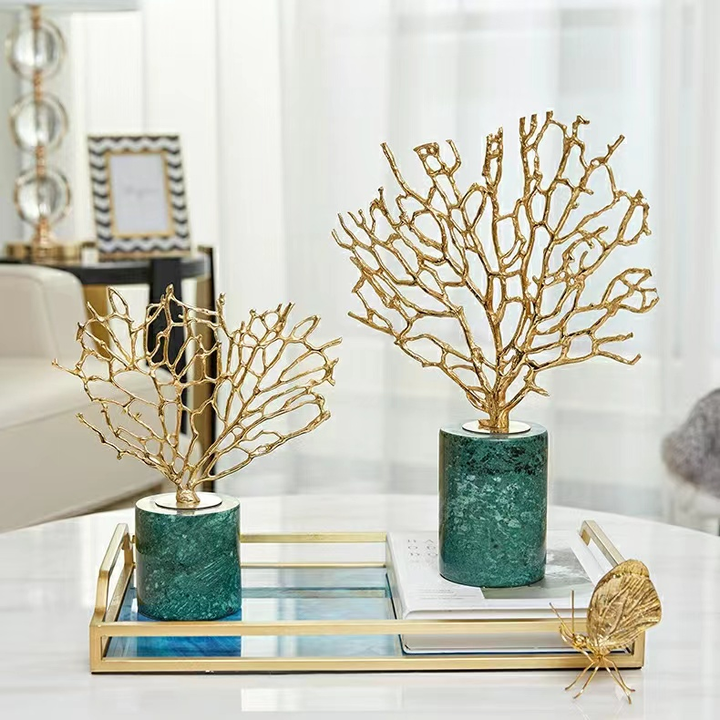 قطعة ديكوريه بتصميم ساحر خاطف للإنظار يأتى بقاعده باللون الفيروزى من الرخام المتين لتوفر الدعم و الثبات الفائق مع تصميم فروع الشجر بفصل الخريف حتي تجعلها قطعه مميز لافته لنظر كل من يراها . يمكنك وضعها بأى غرفه بمنزلك فهى صممت بتصميم يتناسب مع جميع الديكورات .
