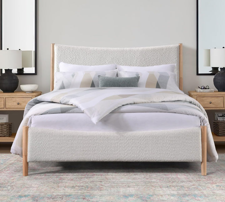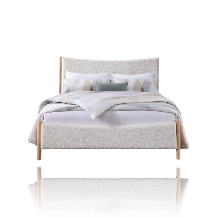 سرير أنيق وعصري يتميز بتصميم بسيط ومريح يضفي لمسة من الدفء والهدوء على غرفة النوم. مصنوع من إطار خشبي متين يمنحه استقراراً ومتانة، ومغطى بنسيج ناعم وفاخر يضفي لمسة من الفخامة والبساطة. هذا السرير مثالي لأولئك الذين يبحثون عن الراحة والجودة بتصميم يلائم الديكورات الحديثة ويعزز أجواء الاسترخاء في غرفة النوم.