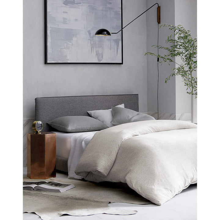 سرير بتصميم عصري أنيق يعكس البساطة والفخامة. يتميز بإطار مبطن بالكامل بقماش ناعم ولون رمادي هادئ يضفي لمسة من الهدوء والرقي على غرفة النوم. يتميز السرير بقاعدة منخفضة توفر مظهرًا انسيابيًا وأنيقًا، مع مسند رأس مريح وعالي يوفر دعماً ممتازاً للظهر عند القراءة أو الاسترخاء. تصميمه البسيط يتناسب مع مختلف أنماط الديكور الداخلي، مما يجعله خيارًا مثاليًا لمن يبحثون عن سرير يجمع بين العملية والأناقة في آن واحد