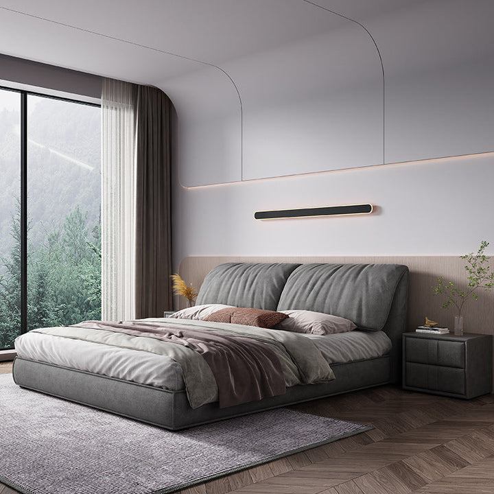 سرير عصري فاخر يجمع بين الراحة والأناقة في تصميم واحد. يتميز بظهر مبطن يوفر دعماً إضافياً للراحة أثناء القراءة أو الاسترخاء. مصنوع من خامات عالية الجودة مع تنجيد ناعم ولمسة نهائية أنيقة تضفي جواً من الفخامة على غرفة النوم. يوفر هذا السرير مساحة واسعة للراحة، مما يجعله الخيار المثالي للأفراد الذين يبحثون عن تصميم حديث وجذاب يضيف لمسة من الفخامة إلى ديكور الغرفة.