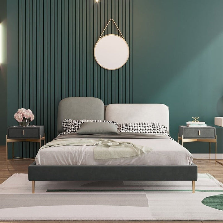 سرير مخملي بتصميم حديث بلون رمادي او وردي، متاح بمقاسات مثالية لمختلف مساحات غرف النوم وهي العمق 200سم، العرض 160/180سم، والارتفاع 120سم. مصنوع من خامات عالية الجودة، بما في ذلك القماش المخملي، الحديد، وخشب صلب . يوفر جمالية عصرية وراحة فائقة في غرفة النوم الخاصة بك.