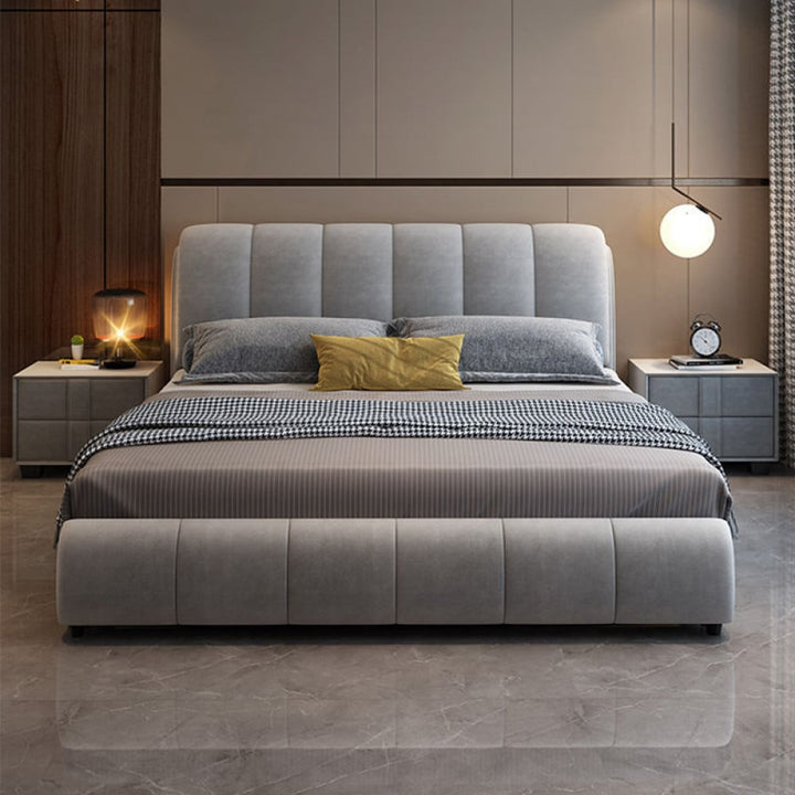 سرير مودرن بتصميم حديث ي هو سرير فريد من نوعه يجمع بين الجمال والمتانة. تم تصميمه بأركان مستديرة وخطوط أنيقة ليناسب أي غرفة نوم. يتميز سرير مودرن بالمتانة والصلابة حيث يتم صنعه من خشب صلب عالي الجودة. يمكنه تحمل الاستخدام اليومي لفترة طويلة من الزمن. وتجعل الوانه سواء الرمادي او البيج الفاتح مناسبًا لأي نمط من الأثاث. يأتي سرير مودرن بتصميم حديث بإطار قوي وقاعدة متينة تضمن الثبات والراحة أثناء النوم. احصل على سرير مودرن لتعزيز جمال غرفة نومك والاستمتاع بنوم مريح