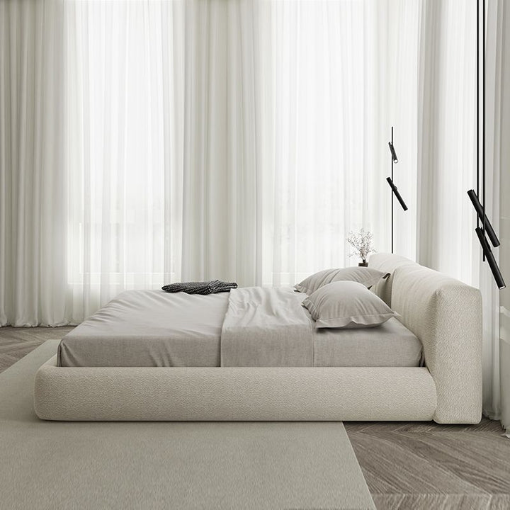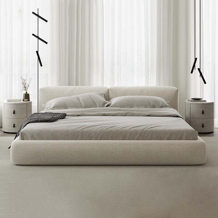 سرير نوم عصري بتصميم أنيق وبسيط يجمع بين الراحة والجمال. يتميز بإطار منخفض مبطن بالكامل يمنح الغرفة إحساسًا بالهدوء والاسترخاء. يوفر لك هذا السرير دعماً ممتازاً للظهر والرأس بفضل لوح الرأس العريض المبطّن، ما يجعله مثاليًا للقراءة أو الاسترخاء. تصميمه المودرن يناسب أي ديكور داخلي، مما يضيف لمسة من الرقي إلى غرفة النوم. مصنوع من مواد عالية الجودة لتوفير الراحة والمتانة لفترة طويلة، وهو الخيار الأمثل لأولئك الذين يبحثون عن الفخامة والبساطة في آنٍ واحد
