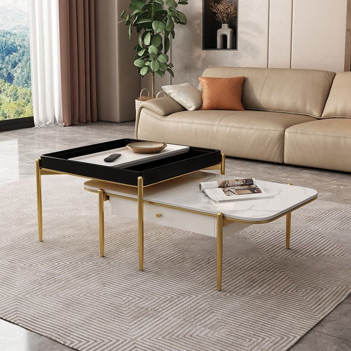 طاولة قهوه متداخله بتصميم عصرى . مصنوعه من المعدن و بديل الرخام يلتقي الأسلوب الأنيق مع التصميم الفريد والمتين في طاولة القهوة هذه . تجمع بين الأناقة والمتانة. مثالية لإضافة لمسة عصرية إلى أي مساحة معيشة.