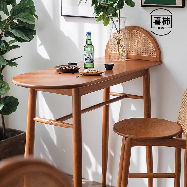 انغمس في أناقة فريدة مع طاولة البار الخشبية ذات التصميم المبتكر! تتميز هذه الطاولة بقاعدة خشبية متينة وسطح أنيق، مع إضافة عصرية بمسند ظهر من الخيزران المنسوج يثبت على الحائط ليضفي لمسة جمالية ووظيفية. مثالية للمقاهي العصرية، البارات الأنيقة، أو حتى ركن دافئ في منزلك، توفر هذه الطاولة مساحة مثالية للاستمتاع بمشروبك أو وجبة خفيفة برفقة شخص أو اثنين. تصميمها المدمج يجعلها خيارًا رائعًا للمساحات الصغيرة دون التضحية بالأناقة والجاذبية. أضف لمسة من الرقي والتميز إلى مساحتك مع هذه الطاولة الفريدة