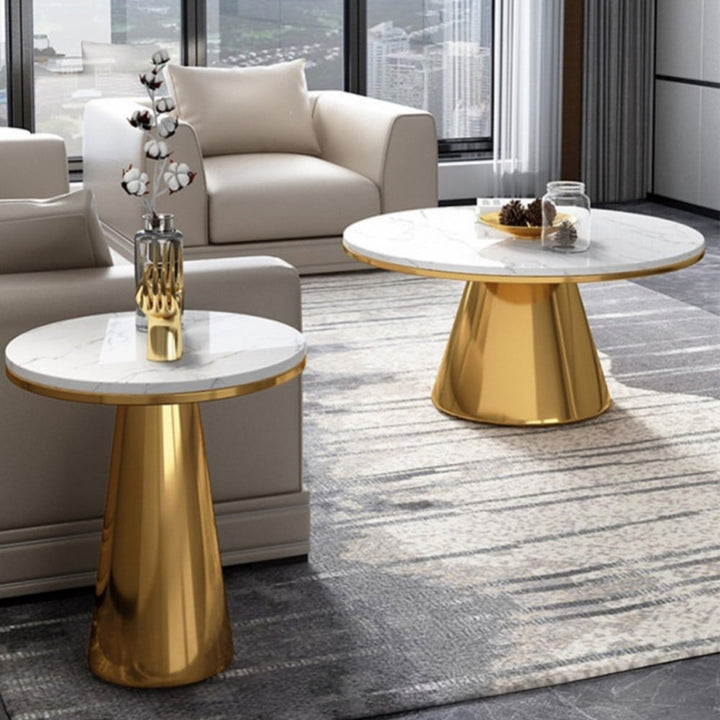 طاولة قهوة بنمط اوروبي عالية الجودة مصنوع من الرخام الصخري ومن الاستانس ستيل غير قابل للصدأ و متاحه باللون الذهبي اللامع الذي سوف يضيف لمسات من الاناقه الي اثاث منزلك