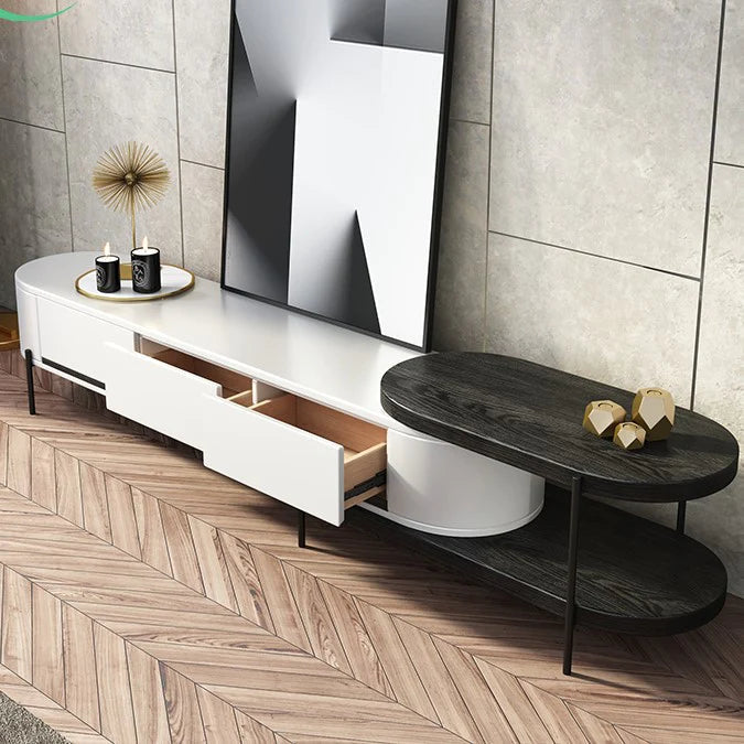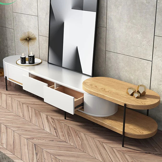 تميز طاولة التلفاز بعدة وحدات للتخزين مع تصميم عصري وحديث . وتتميز بلمسة نهائية محايدة تنسق مع أي ديكور تقريبًا ، كما أنها مصنوعة من خشب متين والأرجل الصلبة الخشبية لتكمل البنية القوية إلى جانب تصميم ممتع.