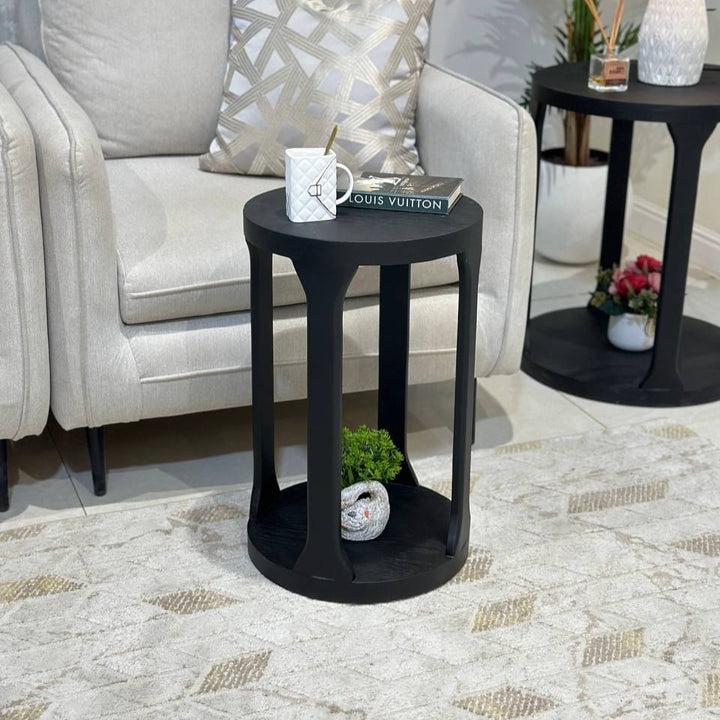أضف لمسة من الرقي والوظائف المتعددة إلى أي زاوية في منزلك مع هذه الطاولة الجانبية الفريدة. بتصميمها الأنيق باللون الأسود العميق ومستوياتها المتعددة، تُعد هذه الطاولة إضافة مثالية لغرفة المعيشة، غرفة النوم، أو حتى منطقة الاستقبال