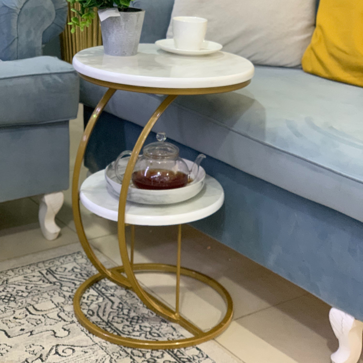 تُقدم هذه الطاولة الجانبية الرائعة مزيجًا مثاليًا من الأناقة والعملية، لتكون إضافة مميزة لأي غرفة معيشة أو ركن استرخاء. تصميمها العصري يجمع بين جمال اللون الأبيض الفاخر والإطار الذهبي الأنيق، مما يضفي لمسة من الرقي والفخامة على ديكور منزلك