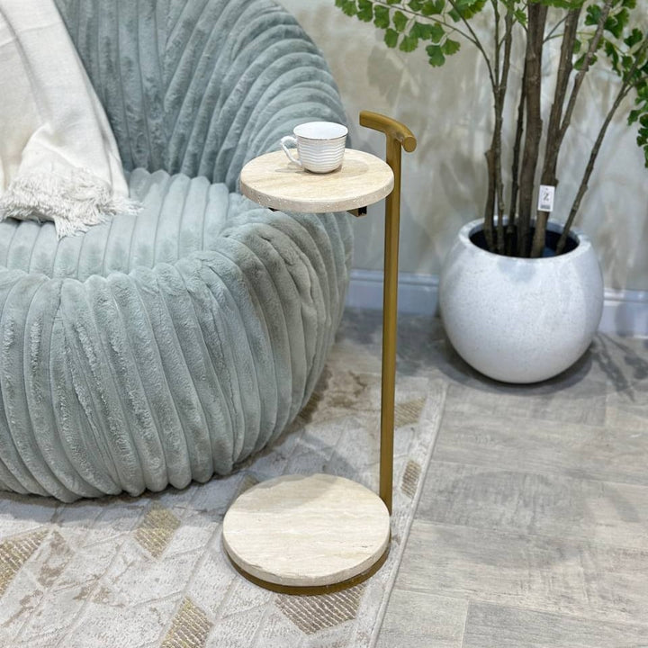 صُممت هذه الطاولة الجانبية الفريدة لتكون إضافة مثالية لمساحتك، حيث تجمع بين الجمال فى التصميم والتصميم العملي ذي المستويين. مثالية لوضع أساسياتك اليومية، المشروبات، أو حتى كقطعة ديكور أنيقة تضفي لمسة من الهدوء والرقي على غرفة معيشتك، غرفة نومك، أو مكتبك