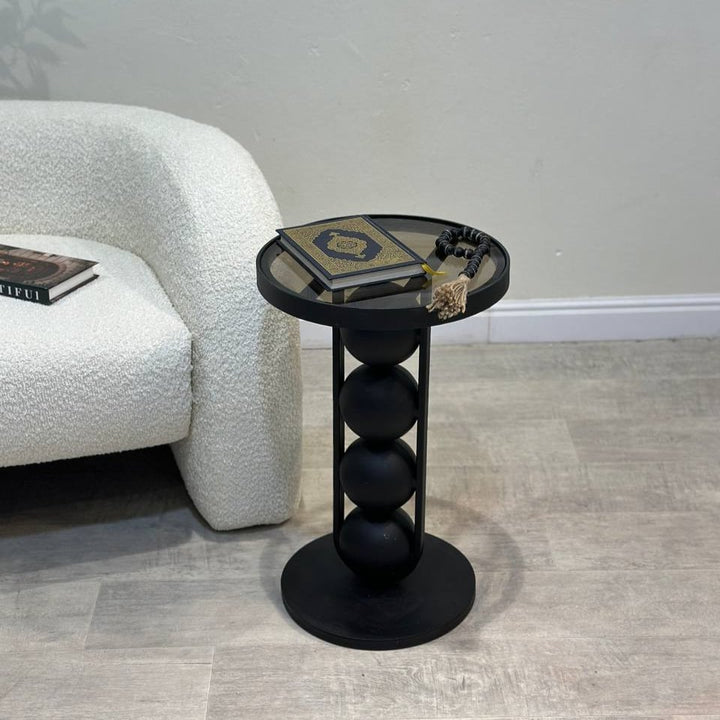 تعد هذه الطاولة الجانبية قطعة فنية وعملية في آن واحد، مصممة لتكون إضافة مميزة لأي غرفة معيشة، صالة استقبال. يمزج تصميمها الجذاب بين الأناقة الخالدة للون الأسود، شفافية الزجاج، والتفاصيل الهندسية المستوحاة من الفن الحديث، لترتقي بديكور منزلك