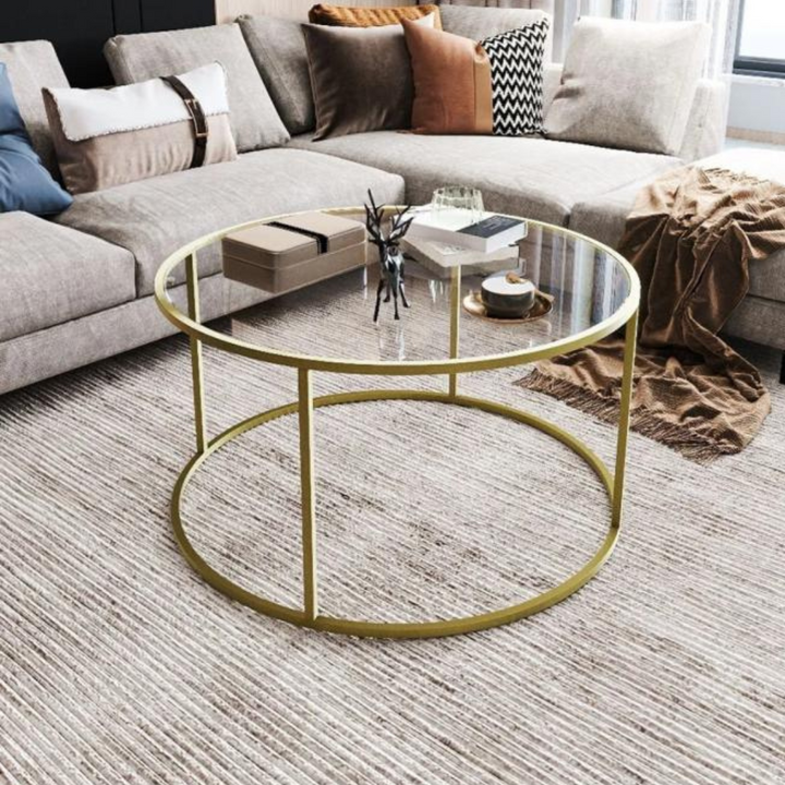 طاولة قهوه بتصميم أنيق و عصري شكلها الدائري والزجاج الشفاف يمنحان إحساسًا بالاتساع ويضفيان لمسة عصرية على أي ديكور. مصنوعه من سطح زجاجي مقوى سهل التنظيف ومقاوم للخدوش، وقاعدة معدنية قوية توفر ثباتًا ومتانة تدوم طويلاً.