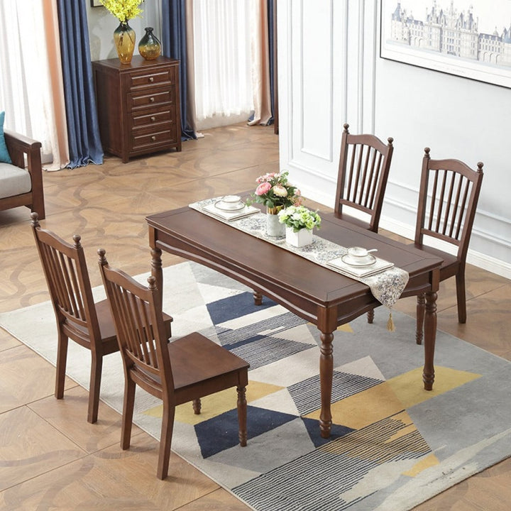 طاولة طعام خشبيه علي الطراز الكلاسيكي القديم من خشب شجر الصنوبر المتين و شديد التحمل و مقاوم للحراره الذي يسهل تنظيفه متوفره ب اللون البني و مقاس 150 *76 *85 سم و يمكن أستخدامها في المنازل و الفنادق و المطاعم