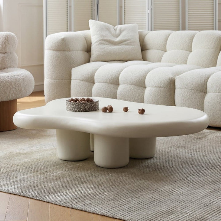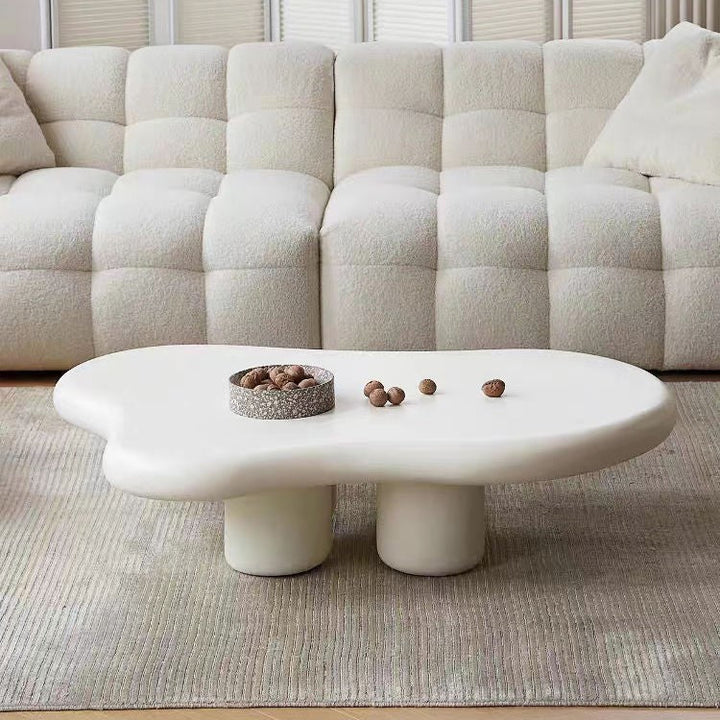 طاولة قهوة بتصميم السحابة الذي يتميز بهدوء و ببساطه تفاصيله وهي مصنوعة من فايبر جلاس متين و شديد التحمل الذي يضمن لك الثبات لفترات طويله من الزمن و هي متوفره ب اللون الابيض الكريمي و الاسود و مقاس الارتفاع 30 سم * العرض 120 سم * العمق 89 سم