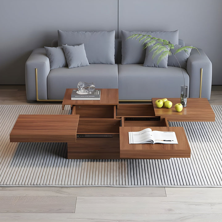 تعتبر طاولة القهوه الرائعه هذه بمثابة ترقيه لغرفة المعيشه الخاصه بك بتصميمها المعاصر و المختلف . يمكنك التحكم فى سطح الطاوله حيث يمكن تمديد الطاولة لإنشاء أشكال مختلفة، مما يوفر مساحة تخزين بالداخل . و تم أستخدام أجود انواع الخشب لضمان الاستدامه مع استخدام اللون البنى الدافئ