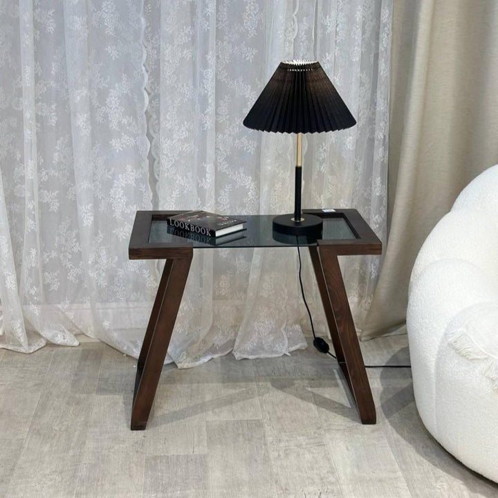 تُعد هذه الطاولة الجانبية قطعة فنية فريدة، مصممة لتكون نقطة محورية جذابة في أي غرفة معيشة أو غرفة نوم أو ركن استرخاء. بفضل مزيجها الأنيق من الخشب الداكن الغني والزجاج الشفاف، تقدم هذه الطاولة مزيجًا مثاليًا من المتانة والأناقة العصرية. تصميم أرجلها المبتكر يضفي عليها طابعًا معماريًا جريئًا، بينما يوفر السطح الزجاجي مساحة عملية وعصرية لعرض مقتنياتك أو الاحتياجات اليومية