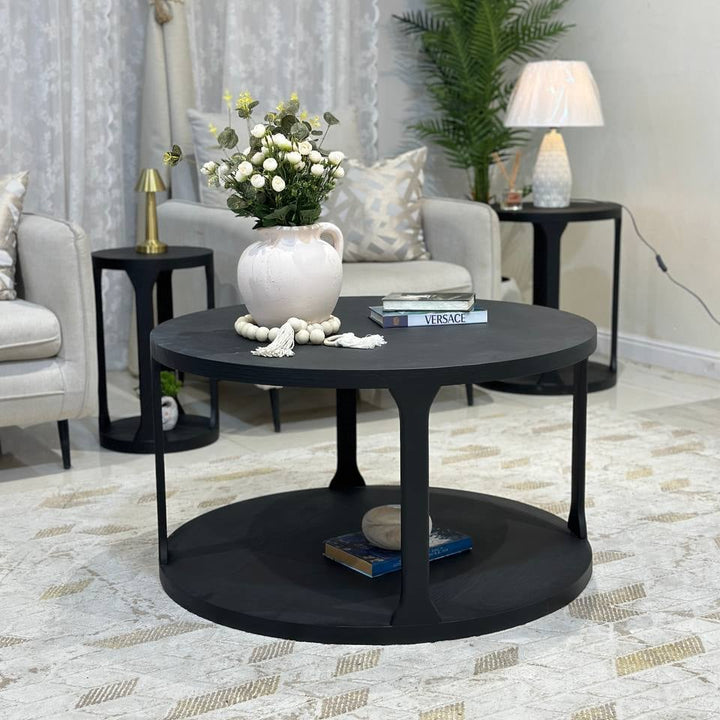 أضف لمسة من الأناقة العصرية والوظائف العملية إلى مساحة معيشتك مع هذه الطاولة القهوة الدائرية الأنيقة باللون الأسود. بتصميمها العصري ورفها السفلي العملي، تُعد هذه الطاولة إضافة مثالية لغرفة جلوسك، حيث تجمع بين الجمال البسيط والمساحة الإضافية لتنظيم أغراضك.