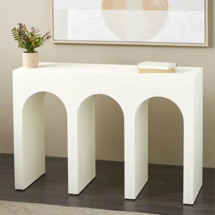 طاولة المدخل البيضاء هذه هي الخيار المثالي لإضفاء لمسة من الأناقة والنقاء على مدخل منزلك. تتميز بتصميمها البسيط والعصري الذي يناسب مختلف أنماط الديكور الداخلي، ما يجعلها قطعة فريدة تجمع بين الجمال والوظيفة.
