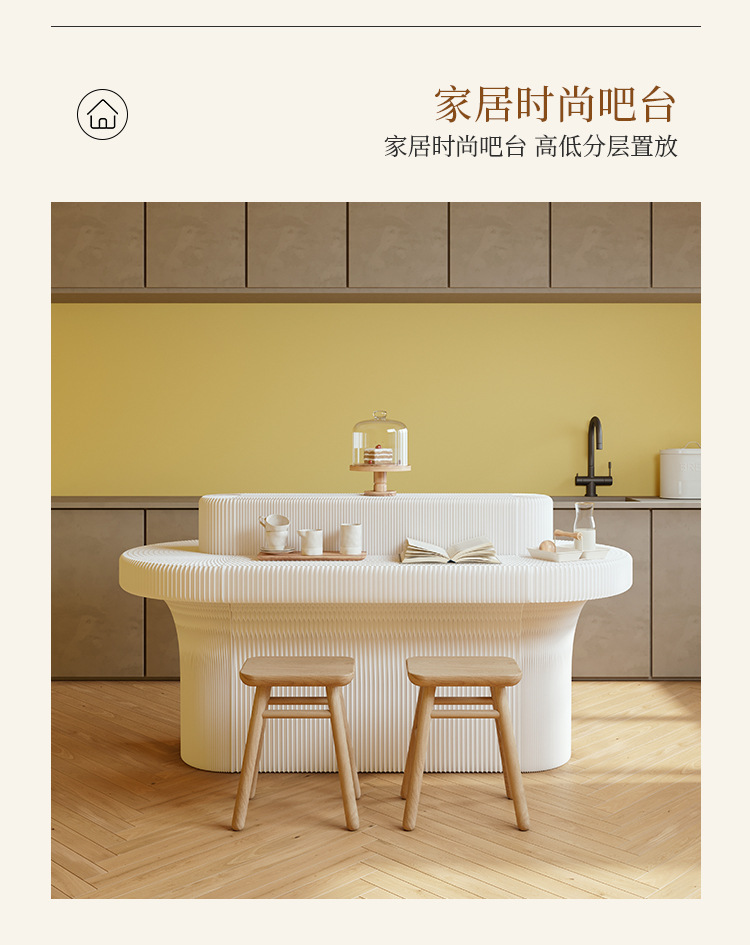 تتميز هذه الطاوله بتصميم جميل و حديث ف هي يمكنك أستخدامها عدة أستخدامات يمكنك أستخدامها كطاولة طعام أو طاولة بار ف هي مصنوعه من ورق الكرافت المتين المقاوم للماء و الرطوبه و أيضاً يمكنك تنظيفه بكل سهوله و هو متوفر ب اللون الأبيض
