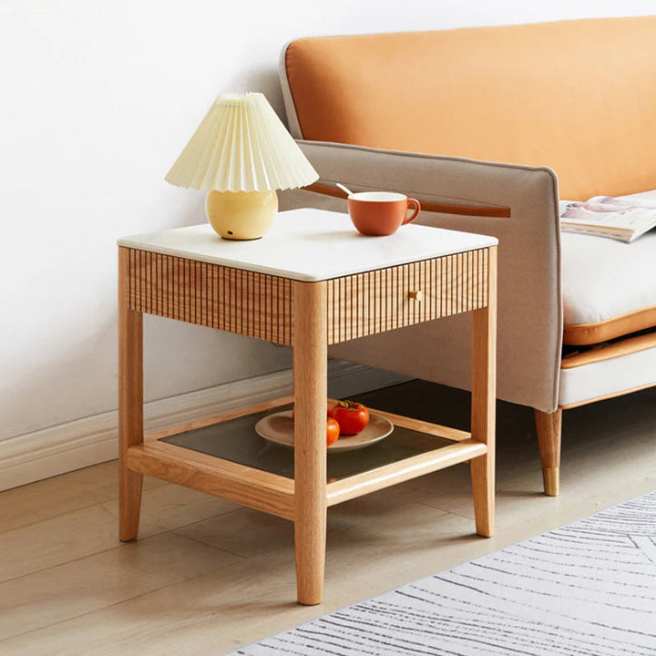 تتمتع بهذه الطاولة الجانبية بطابع عصري يجعلها خيار مثالي لديكور منزلك. مصنوعة من الخشب المتين ولون دافئ، ومجهزة بدرج تخزين لمنحك سعة تخزين إضافيه . أحصل عليها الأن و اجعل فى منزلك قطعه أثاث مميزه