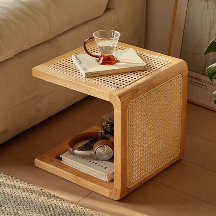 طاوله جانبيه متعددة الأستخدامات . تتميز بسطح واسع لتلبية جميع أحتياجاتك الاساسيه .طاولتنا الجانبيه مصنوعه من الخشب الصلب و خشب الروطان يضيف لمسه من سحر العالم الكلاسيكى الى الطاوله . يتيح تصميمها البسيط استخدامها كطاوله جانبيه أو طاولة منخفضه فى زاويه القراءه المريحه . تمنحك الوانها المتعدده حرية الاختيار اللون المناسب لك من بين الخشبى الفاتح و البنى و الأسود
