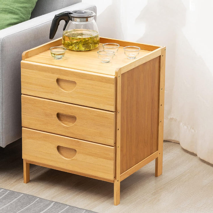 أضف لمسة عملية وجميلة إلى غرفة نومك مع هذه الطاولة الجانبية ذات التصميم العصري والبسيط. تتميز بثلاثة أدراج واسعة ولون خشبي فاتح يعكس الهدوء والدفء في نفس الوقت. مصنوع من خشب عالى الجوده ضمن المتانة والقوة مع لمسة نهائية ناعمة تضيف لمسة من الفخامة الطبيعية إلى غرفة نومك.