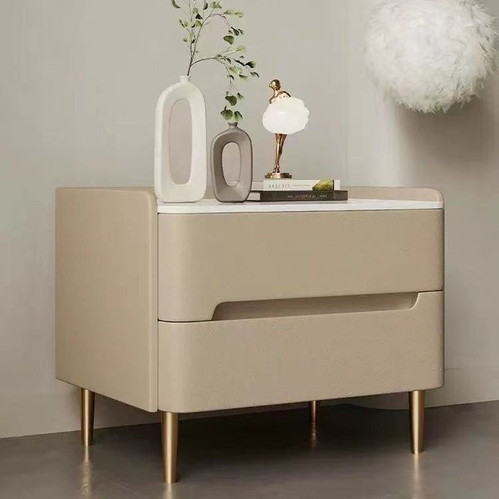 كومودينو بتصميم فاخر هو قطعة أثاث تتميز بالفخامة والأناقة، يتم تصنيعه من خشب عالي الجودة، مما يمنحه القوة والمتانة. كما يتم تزيين بعض الأجزاء بالجلد الفاخر لإضفاء لمسة من الأناقة الراقية. يتوفر باللون البيج لإضفاء لمسة من الترف والأناقة.يُستخدم هذا الكومودينو في المنزل لتزيين الغرفة وتوفير مساحة تخزين إضافية. يمكن استخدامه كجانبية للسرير لوضع المصابيح الجانبية أو الأشياء الشخصية الأخرى.