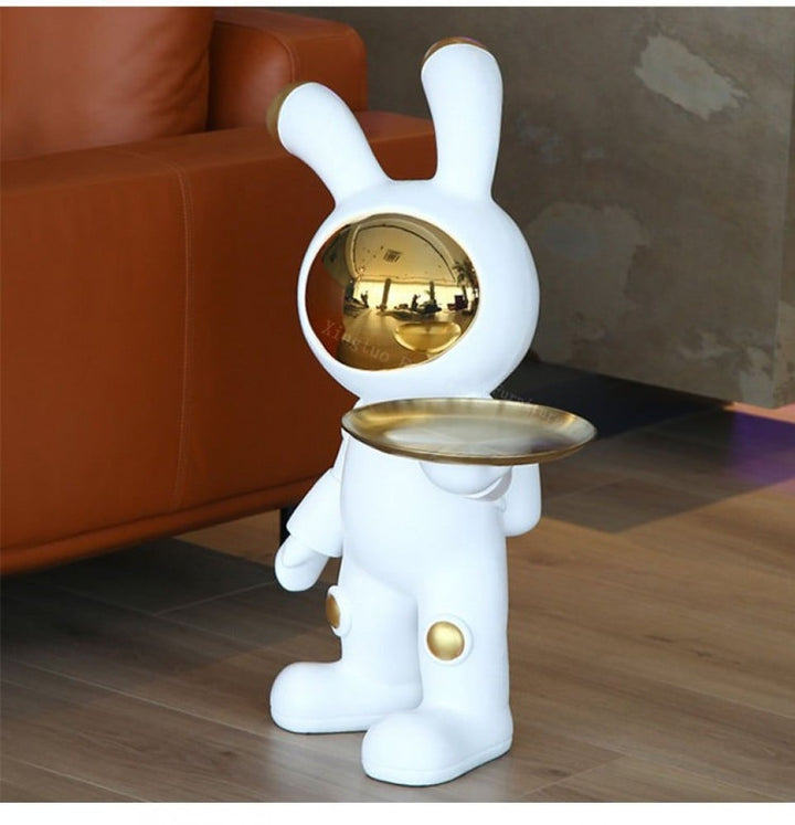 أضف لمسة فريدة ومرحة إلى منزلك مع هذه الطاولة على شكل ارنب فضائي. مصنوع من أجود أنواع الراتينج والمواد المعدنية، وهو مصمم على طراز أوروبي رائع من المؤكد أنه سيضيف لمسة أنيقة إلى أي ديكور داخلي. إضافة مثالية لأي غرفة معيشة أو غرفة نوم، ستضفي هذه الطاولة البسمة على كل من يراها. يضمن هيكلها القوي أن تدوم لسنوات، مما يجعلها قطعة أثاث مثالية لمنزلك. و متوفر ب اللون ( الذهبي - الفضي ) يمكنك اختيار اللون المناسب و مقاس ( العرض45 *الارتفاع 75 سم )