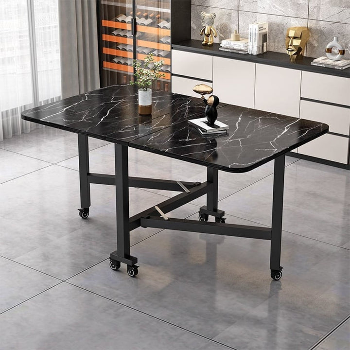 طاولة طعام صغيره قابلة للطي بتصميم أنيق ، سطح طاولة خشبي كامل ،مقاوم للغبار ، ومقاوم للحرارة العالية ، وسهلة التنظيف ، أرجل من الفولاذ الصلب ، تحتوي علي عجل لسهوله تحركها من مكان الي اخر و يمكنها اتساع الي 6 كراسي و متوفره ب اللون ( ابيض - اسود - بيج ) و مقاس ( عرض 100/120 سم * ارتفاع 75 سم ) و يمكن استخدامها في المنازل و الفنادق و المطاعم