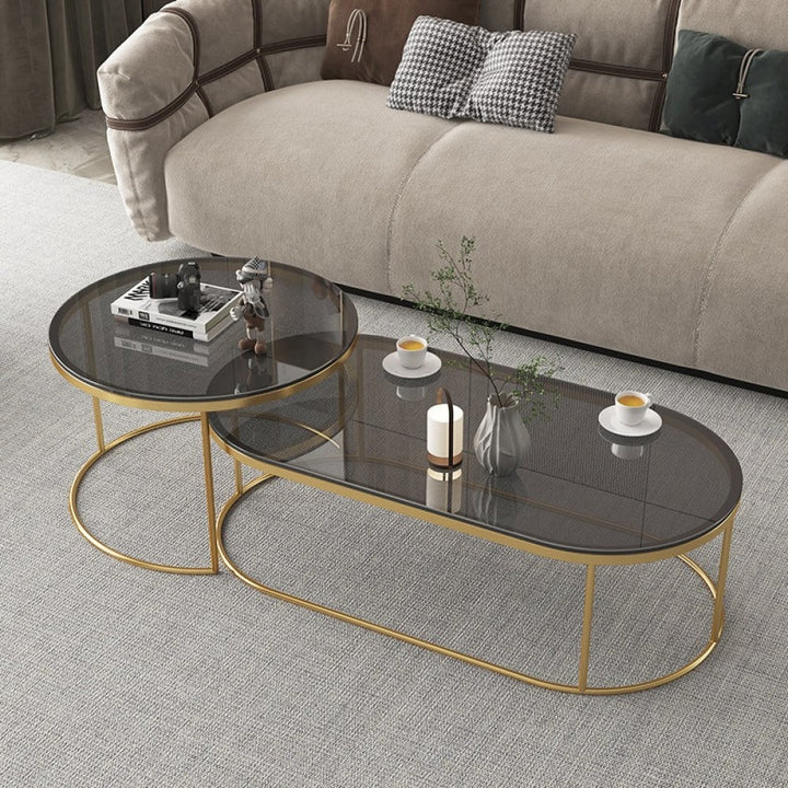 طاوله قهوه عصريه قابله للجمع و الفصل لتتناسب مع المساحه الخاصه بك مصنعه من زجاج متين شديد التحمل و يزينها اطار من الفولاذ المقاوم للصدأ أنيق أضف هذه الطاوله الي منزلك و استممتع بقطعه أثاث مبتكره في منزلك مع هذه الطاوله و هي متاحه بالوان ( ذهبي * زجاج شفاف - ذهبي*زجاج رمادي غامق ) و مقاس ( الكبيره ارتفاع 45 سم و عرض 100سم وعمق 50 سم _الصغيره ارتفاع 50سم و عرض 60 سم وعمق 60 سم )