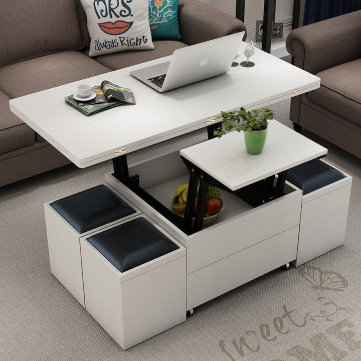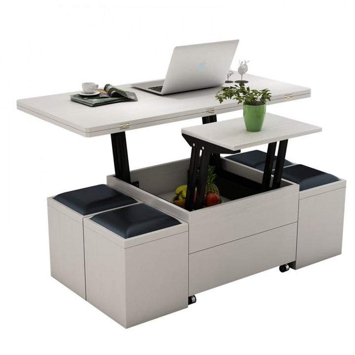 هذا المنتج هو قطعه متكامله و متعددة الوظائف يجب ان تكون متوفره في منزلك ف هي ممكن أن تكون طاوله عاديه لوضع بعض الديكورت او الشاي او القهوه و يمكن ان يتم رفع الجزء العلوي بها لوضع عليها جهاز الكمبيوتر المحمول للقيام ببعض الاعمال او حتي مشاهده الافلام عليه بكل راحه و يمكن ان تكون طاوله عشاء صغيره ف هي منتج متكامل من كل شئ و هي أيضاً مصنعه من أجود أنواع أخشاب أم دي أف عاليه الجوده وشديده التحمل