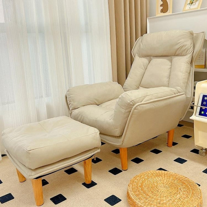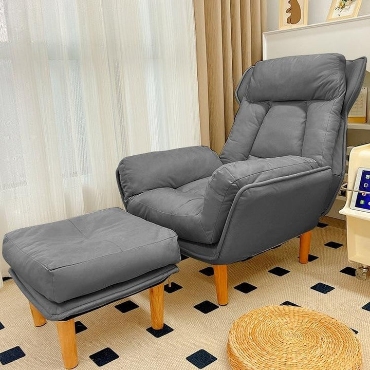 أخلق فى منزلك ركن لك خاص بك يمكنك الحصول على أعلى شعور من الراحه و الأسترخاء فيه بإقتناءك هذا الكرسى مع مسند القدم المصنوع من مواد عالية الجوده مثل الخشب الصلب و الاسفنج المرن و تغطيه من القماش الناعم حتى يكتمل جزء الأسترخاء الخاص بك بالإضافه إلى أنه يمكنك اختيار اللون المناسب لذوقك من بين عدة ألوان و هما البيج - الرمادي الفاتح - الرمادي الغامق - الوردي . يتميز الكرسى بتصميم أتاح له الانسجام مع أى ديكور بأى غرفه بالمنزل
