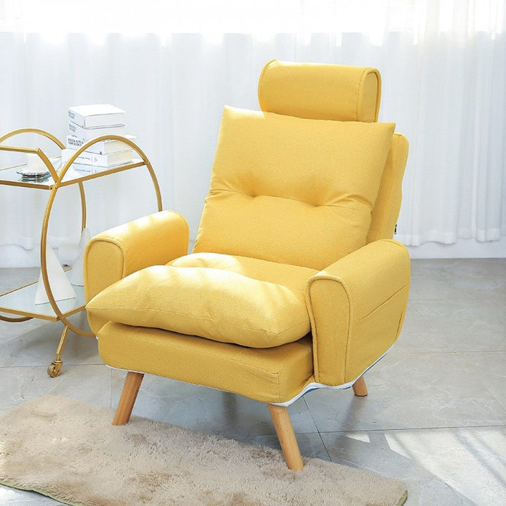كرسي استرخاء قابل للطى مع مسند للقدم بتصميم جذاب مصنوع من النسيج و الخشب الصلب و متاح باللون الرمادي الفاتح و الرمادي الغامق و الاصفر و متوفر بمقاس واحد و هو ارتفاع 95 سم و عرض 72 سم و عمق 56 سم و مقاس المسند هو : ارتفاع 43 سم و عرض 57 سم و عمق 47 سم و يمكن استخدامها في المنزل و الفنادق