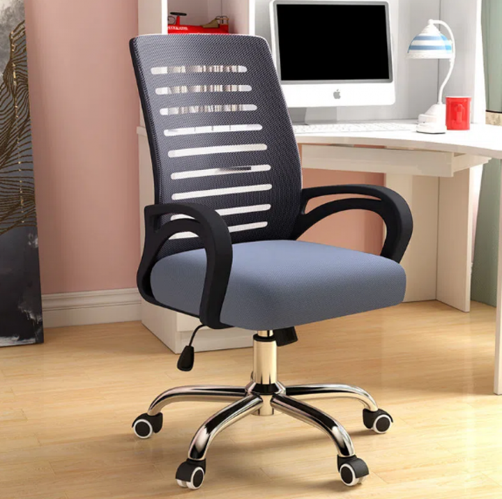 كرسي مكتب بشبك حديث بنمط عصري مصنوع من اجود خامات القماش و البلاستيك متاح باللون الاسود والازرق ومتوفر بمقاس , وهو الارتفاع 90-100سم * العرض 50سم و يمكن استخدامه في العديد من الاماكن و المهام