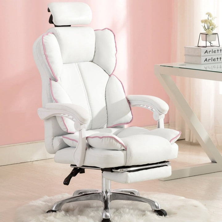 كرسي فاخر مع مسند للقدم .الكرسي بالكامل مصنوع من الفولاذ الصلب المقاوم للصدأ .الكرسي يتحمل الاوزان حتى 125 كيلو جرام .يحتوي على مساند للذراعين قابلة للتعديل حسب الرغبة .حشو من الاسفنج عالي الكثافة يعطي مزيدا من الراحة اثناء الجلوس لفترات طويلة . الكرسي مكسو بطبقة من الجلد المقاوم للتمزق والحرارة وايضا سهل التنظيف .