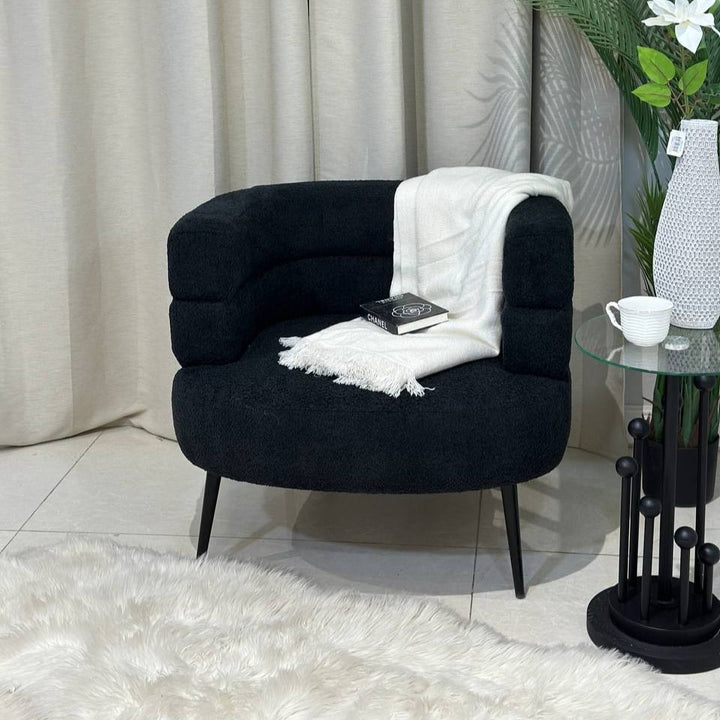 اجعل منزلك ينبض بالفخامة والراحة مع كرسي البوكليه الأسود، القطعة المثالية التي تجمع بين التصميم الجريء والأناقة الخالدة. هذا الكرسي مصمم ليصبح نقطة محورية في أي غرفة، مقدماً تجربة جلوس مريحة وفاخرة