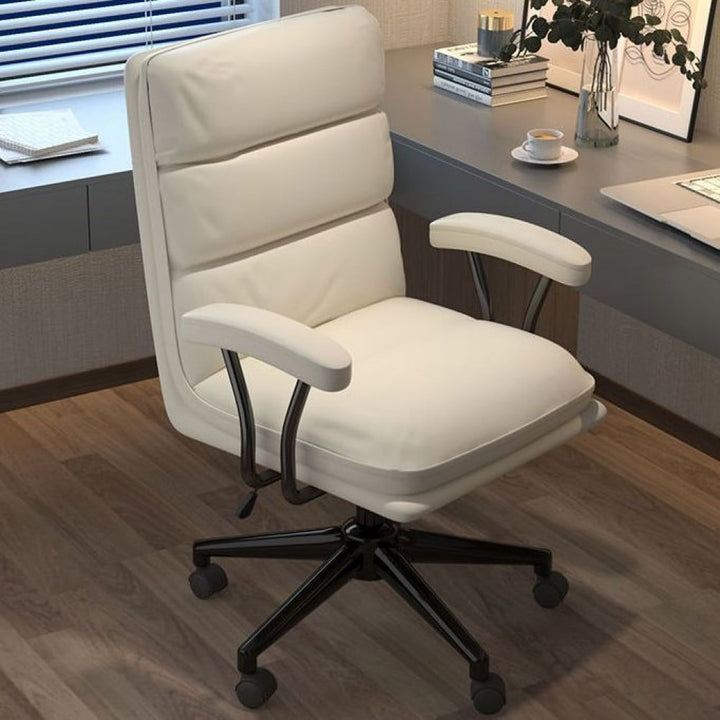 كرسي مكتب جلدي فاخر بنمط تقليدي مصنوع من اجود الجلود الصناعيه و المعدن متاح باللون الاسود والابيض والبني ومتوفر بمقاس , وهو * الارتفاع 85-95سم * العرض 50سم و يمكن استخدامه في العديد من الاماكن و المهام