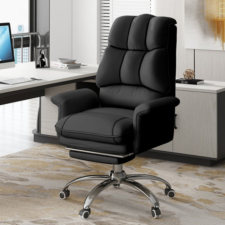 تم تصميم كرسي المكتب لتوفير أقصى درجات الراحة والدعم. تتميز بحشوة إسفنجية عالية الكثافة توفر راحة فائقة، ومسند قدم مدمج لمزيد من الدعم، وإرتفاع قابل للتعديل ومواضع مائلة لتناسب احتياجاتك. الكرسي مصنوع من أجود الخامات الجلدية والمعدنية، ويتوفر باللون البيج والأسود والاصفر والازرق ، ويبدو رائعًا في أي منزل او مكتب . بفضل تصميمه المريح، يوفر هذا الكرسي أقصى درجات الراحة والدعم في أي بيئة عملية.