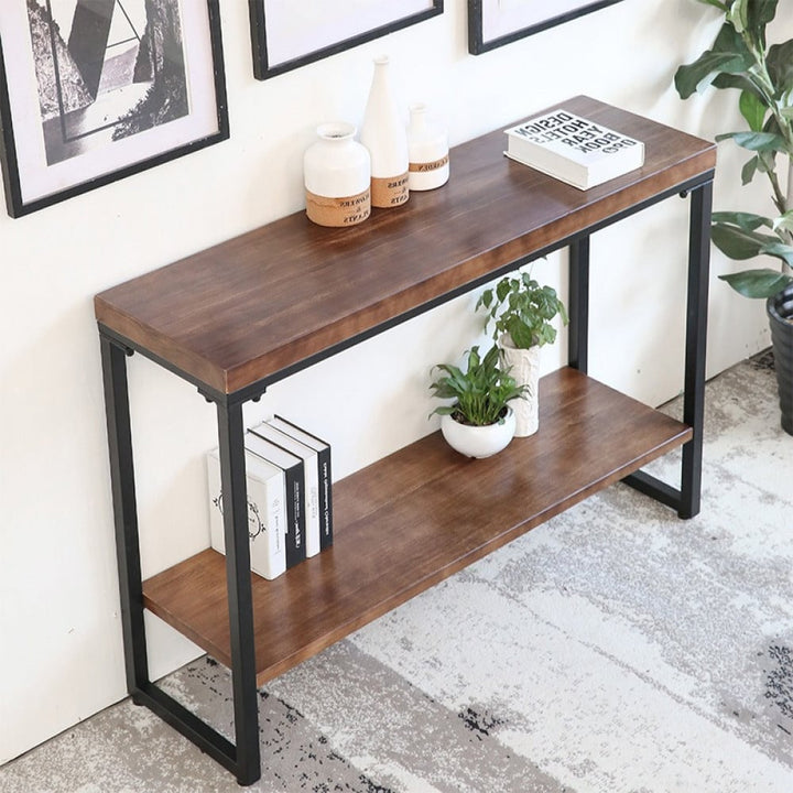 طاولة مدخل خشبية هي قطعة رائعة لتزيين وتنظيم مساحة المعيشة في منزلك تتميز بطابع هادئ وطبيعي رغم بساطتة . مصنوع من أجود انواع الاخشاب و أطار معدني مقاوم للصدأ و هو متوفر باللون ( الخشبي * الأسود ) و مقاس واحد مناسب لجميع مساحات معيشتك وهو ( العرض120 سم * العمق 30 سم * الارتفاع 85 سم )